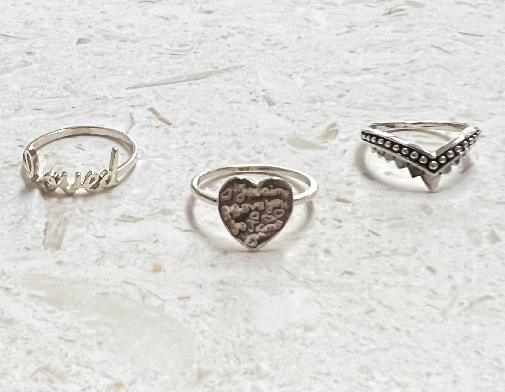 We work directly with our silver producers in Bali. All our silver jewellery is handmade by artisans who use traditional jewellery making techniques to create unique and beautiful pieces for us. Choose from a range of plain silver rings, spinner rings, and silver and genuine stone rings.