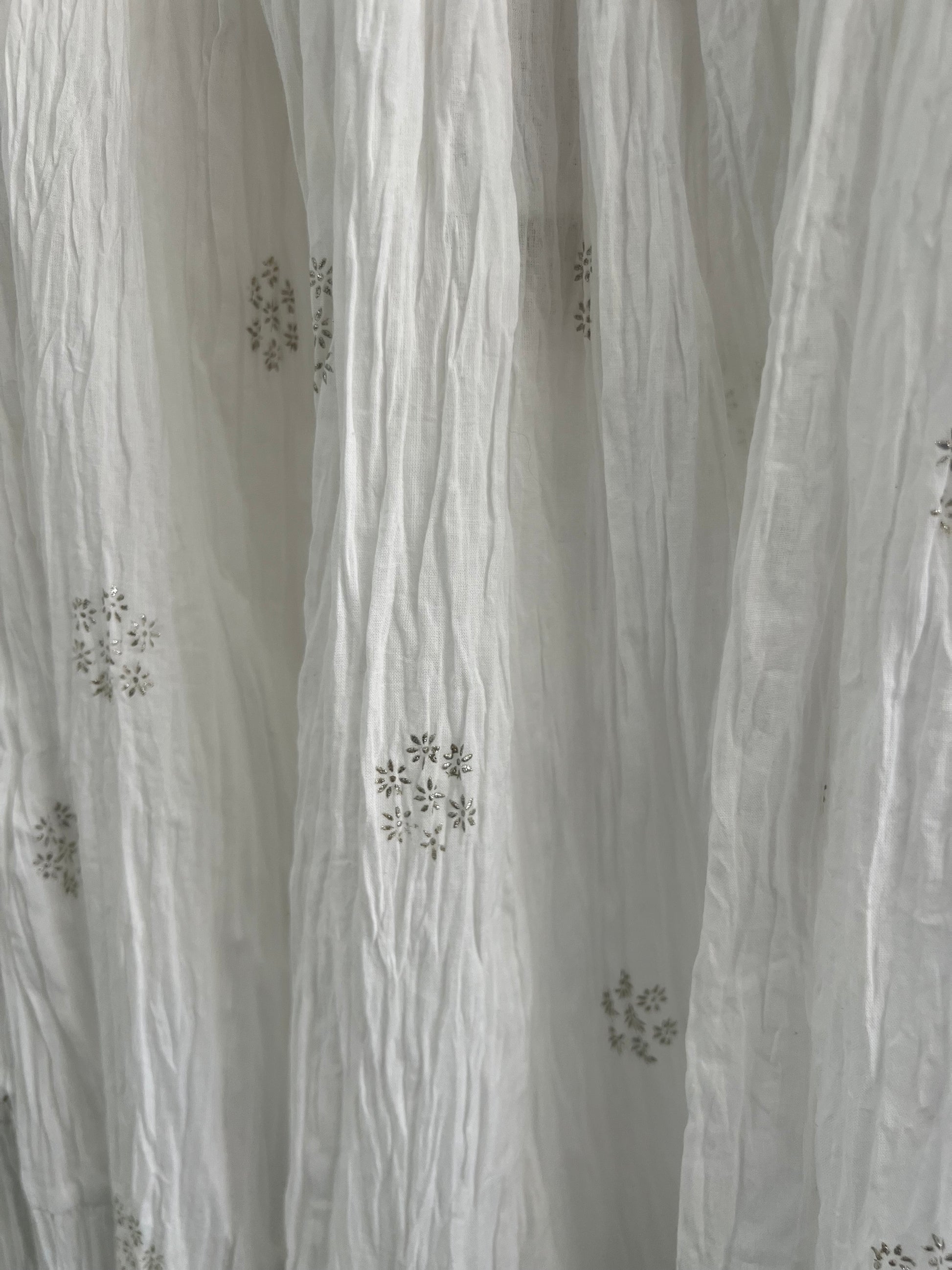 These beautiful “free size” skirts pay homage to a very traditional style of Indian skirt . The skirt has been “hand crinkled” and is intentionally designed to look this way. To keep this crinkled look we recommend to hand wash in cold water , ring to remove excess water. Dry the skirt until it is slightly damp and then twist the ends in opposite directions. Secure both ends together with a rubber band and let dry. Store your skirt tied so the crinkles remain !