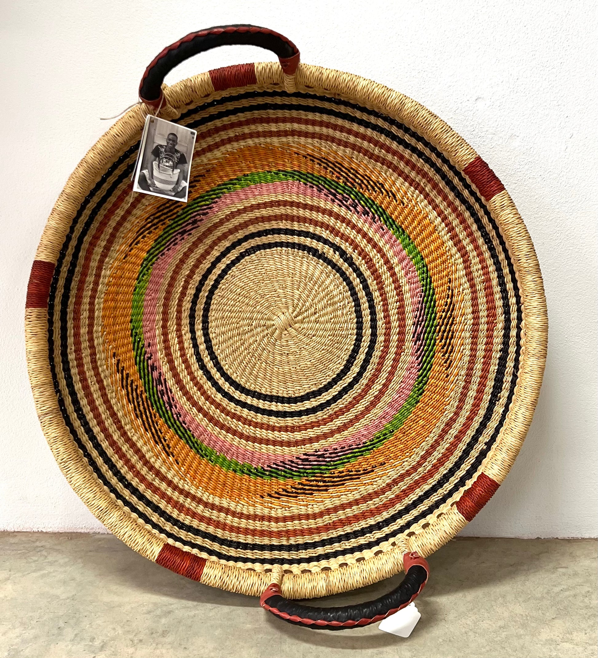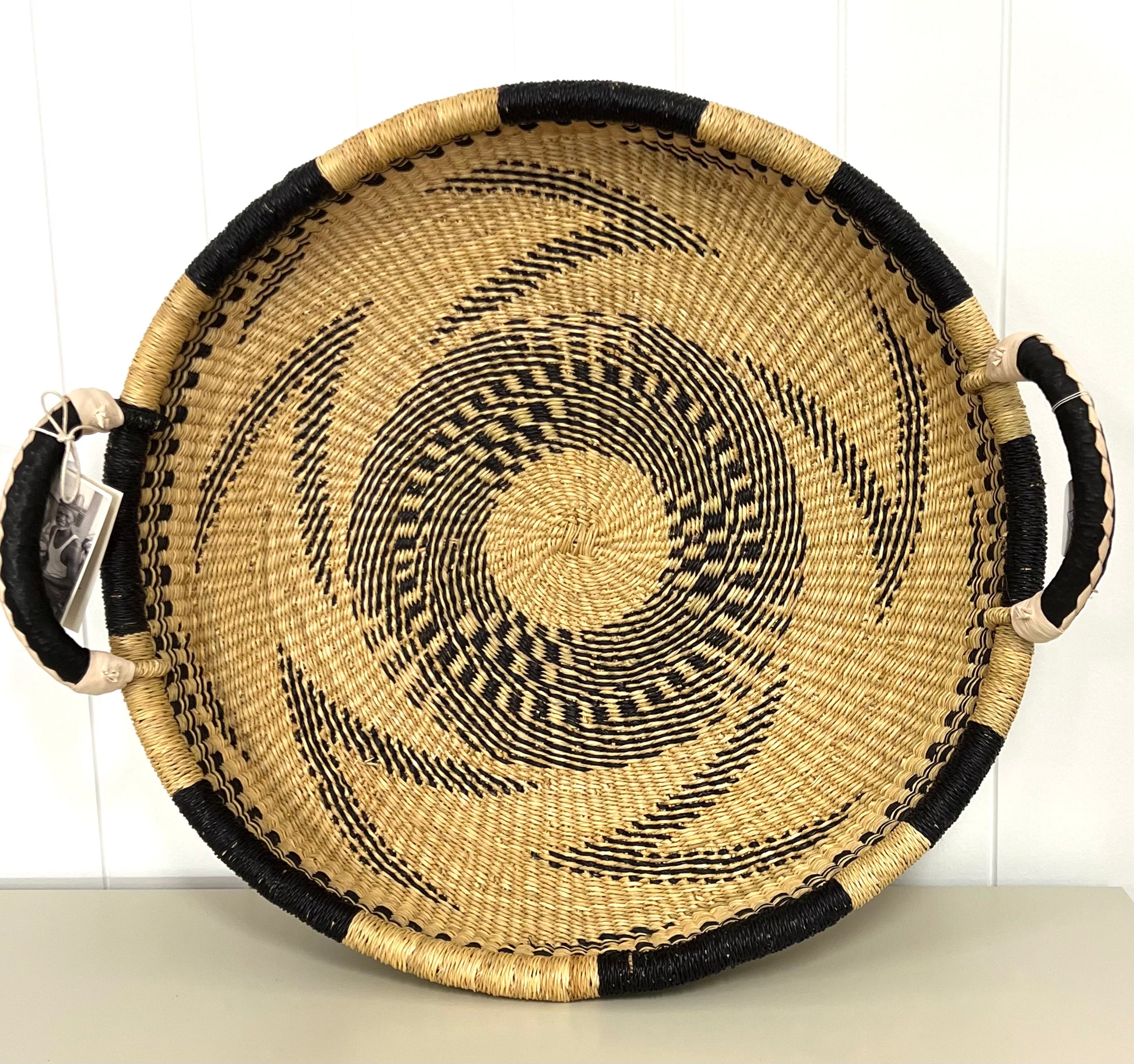 Each “baba tree basket” has been hand woven in Ghana and is a work of art ! Each artisan spends countless hours stripping and dyeing elephant grass fibres before braiding and weaving takes place and a unique and beautiful basket emerges ❤️ Each basket is bio degradable, resilient and made to a very high standard. More importantly, your purchase contributed to sustainable incomes in Ghana and brings dignity to the priceless craftsmanship of the Fra Fra people.