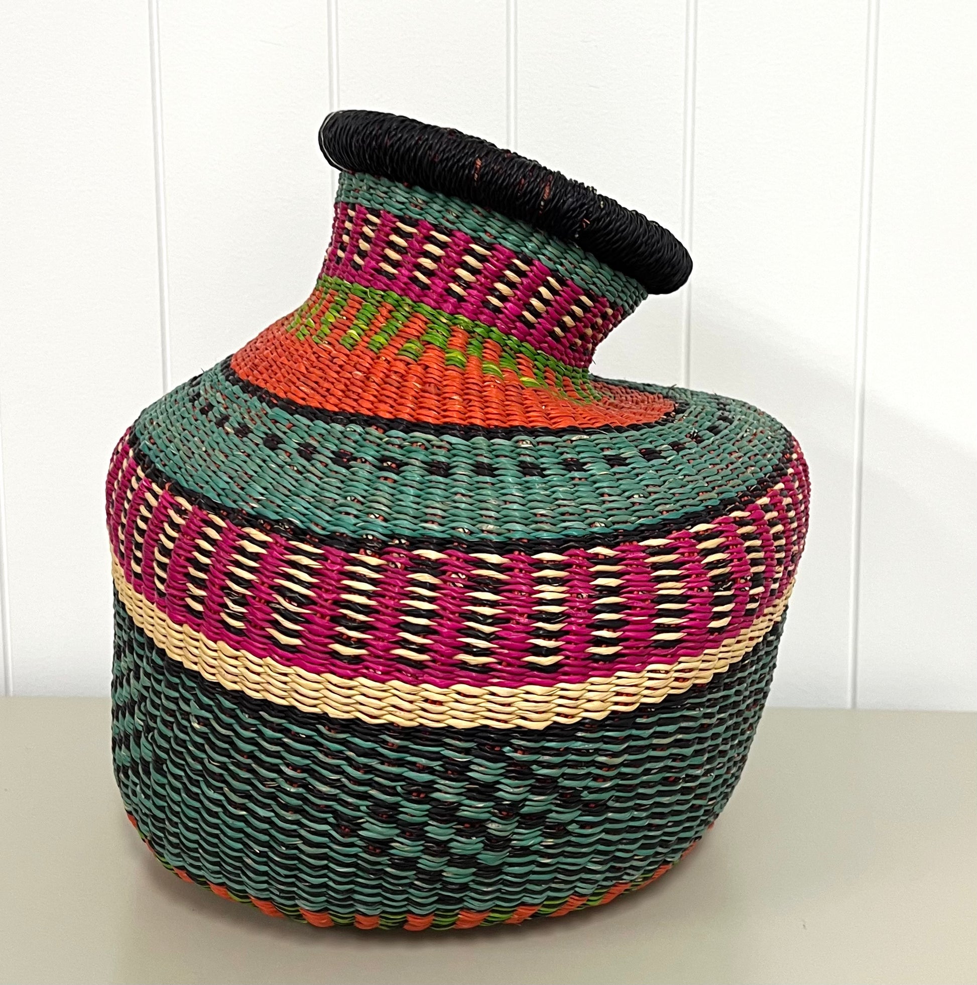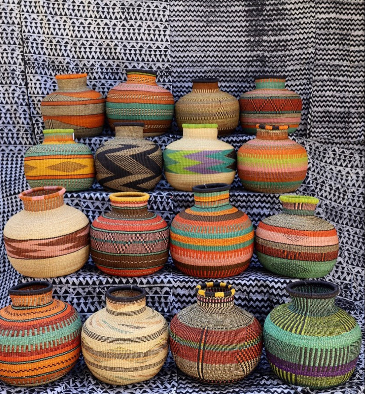 Each “baba tree basket” has been hand woven in Ghana and is a work of art ! Each artisan spends countless hours stripping and dyeing elephant grass fibres before braiding and weaving takes place and a unique and beautiful basket emerges ❤️ Each basket is bio degradable, resilient and made to a very high standard. More importantly, your purchase contributed to sustainable incomes in Ghana and brings dignity to the priceless craftsmanship of the Fra Fra people.