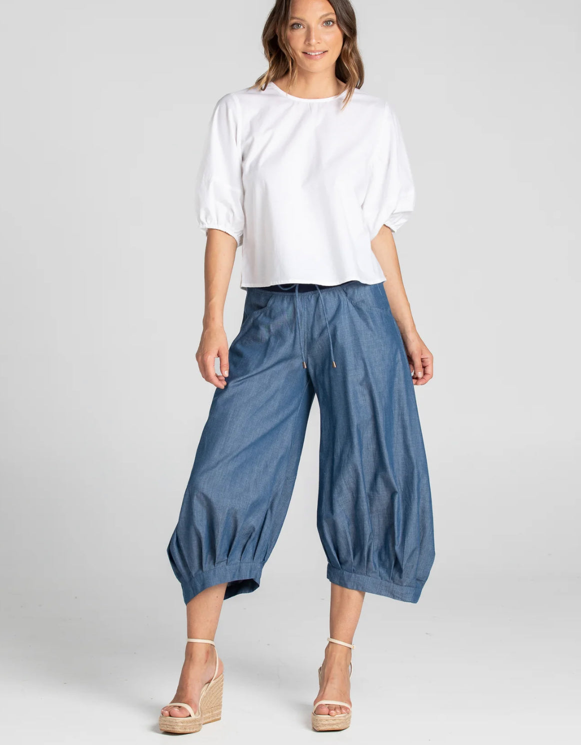 The Boom Shankar Guru Pant is a 3/4 length loose-fitting pant perfect for everyday wear. This style is fitted at the waist with a relaxed, balloon-style leg for ultimate comfort. These 100% cotton bestsellers can be worn with just about anything! For the cooler months team them with boots and as the weather warms pair them with sandals or flats and they will take you right through the seasons!