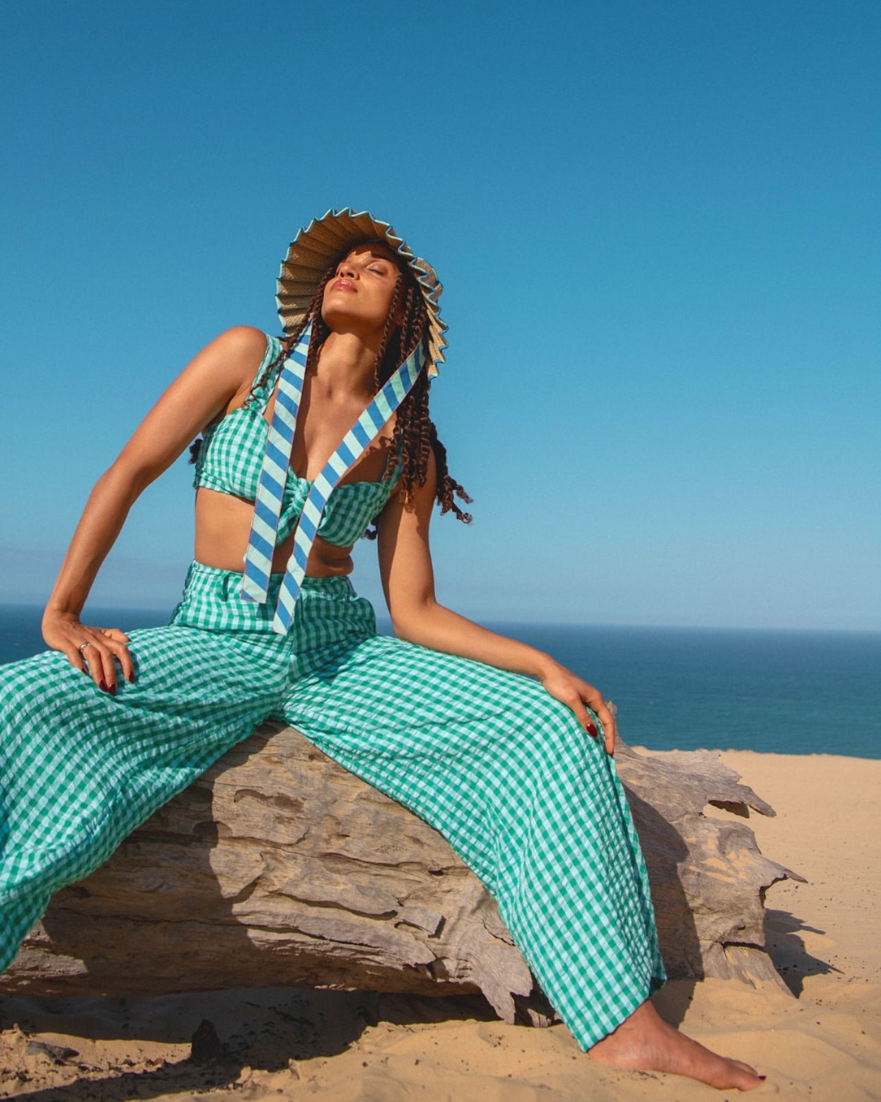 The Boom Shankar Juno Crop is a 100% cotton seersucker top in an on-trend green and blue gingham. This fun and flirty top is super cute with tie up bow at the front. Pair with the Lottie Pant in Green Seersucker for a matching set!