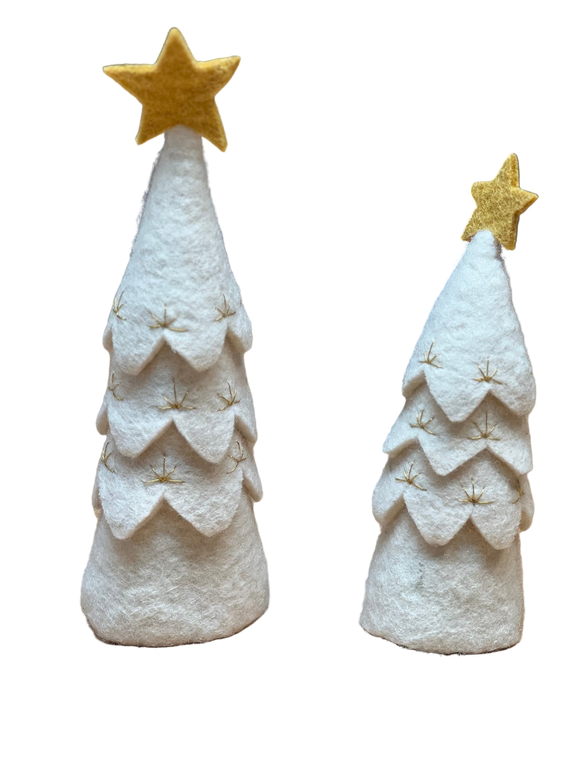 || large tree measures approx 22cm tall, cream colour tree , gold stitching
