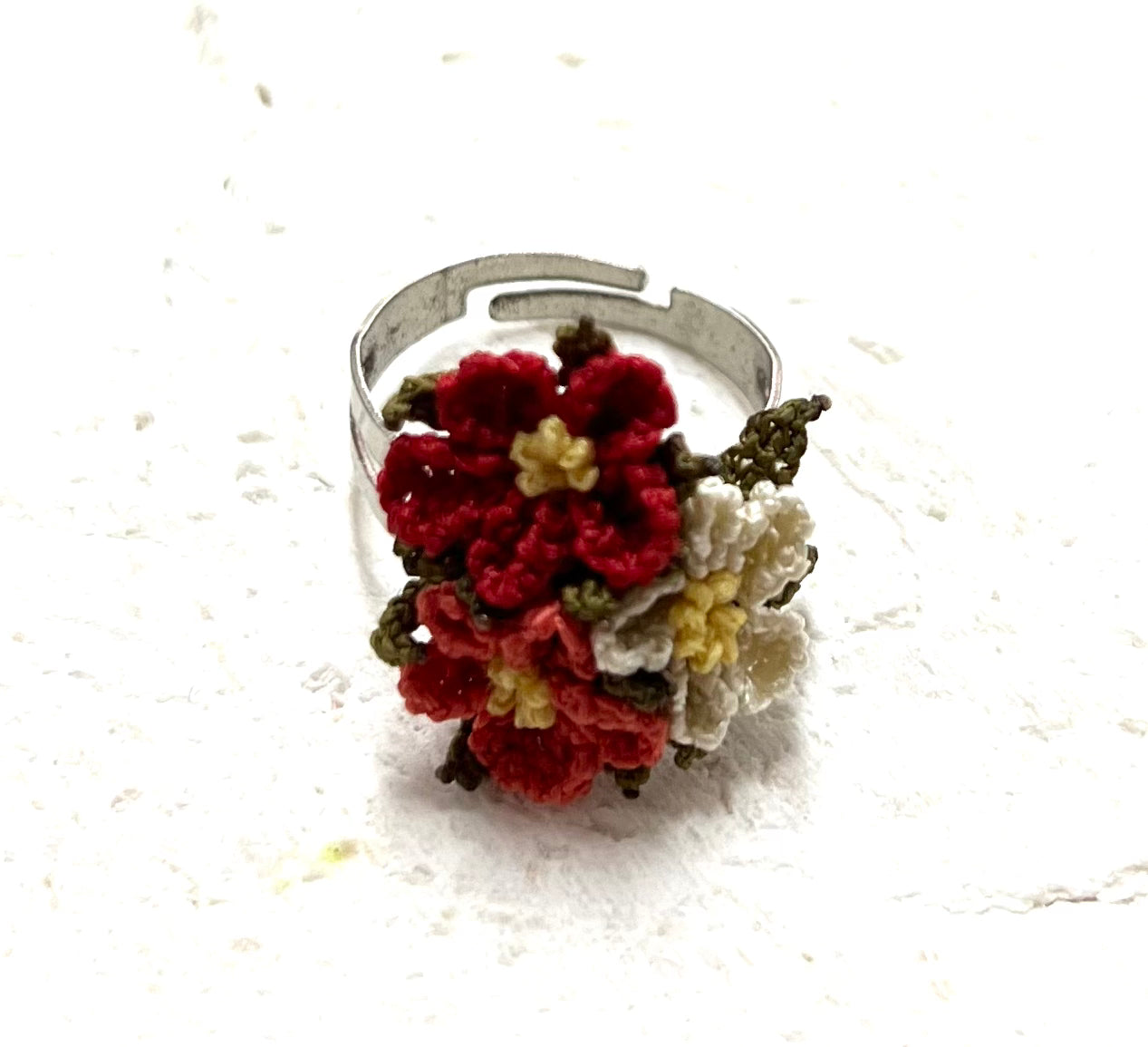 These exquisite flower rings are hand-made using a traditional Turkish needle lace technique known as "oya". A technique that is passed on from generation to generation, Oya is a symbol of delicacy, patience and beauty. They are made by hundreds of stitches and knots using a very thin needle and thread. They are light weight and delicate and perfect for any age and any occasion.