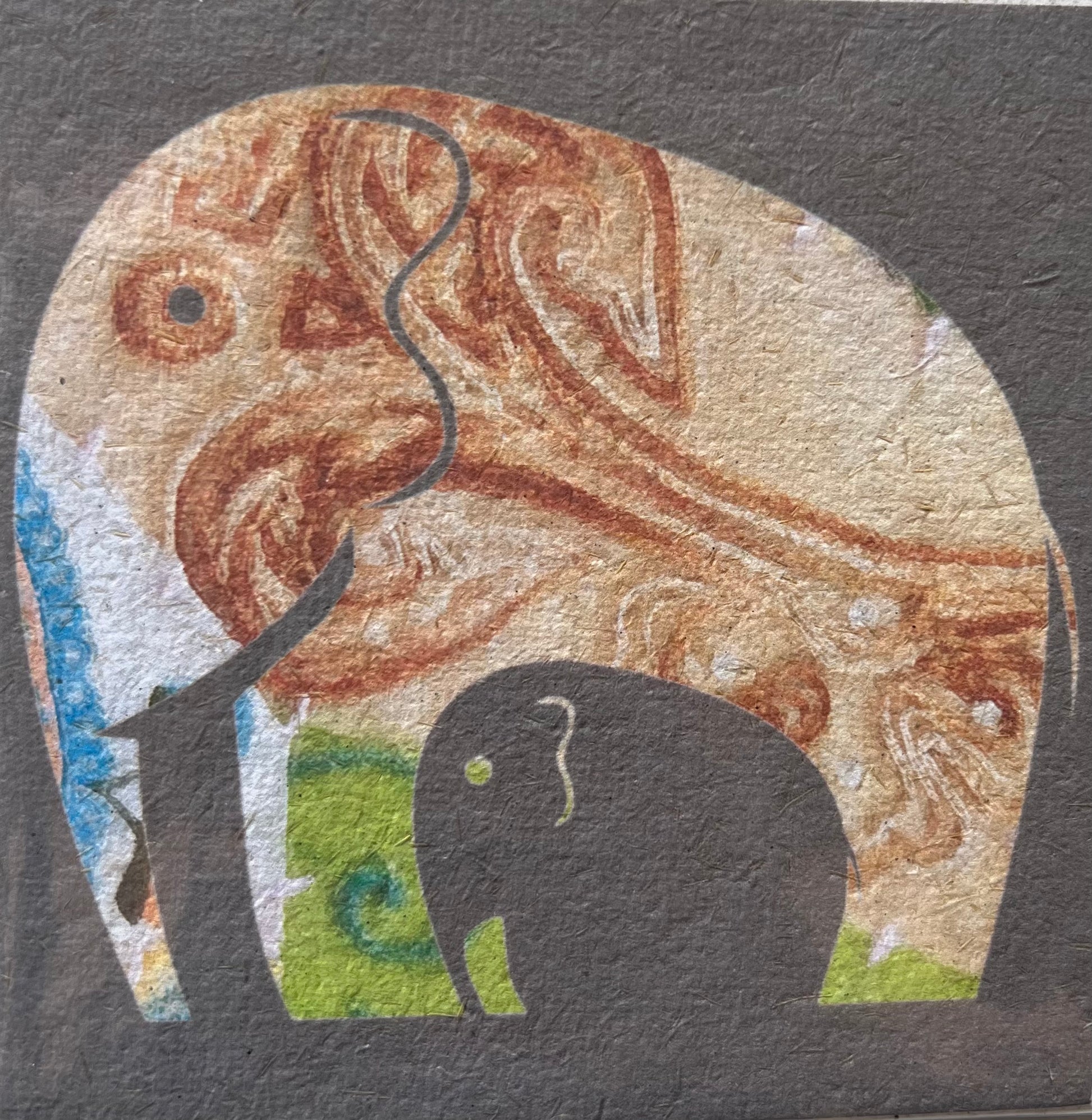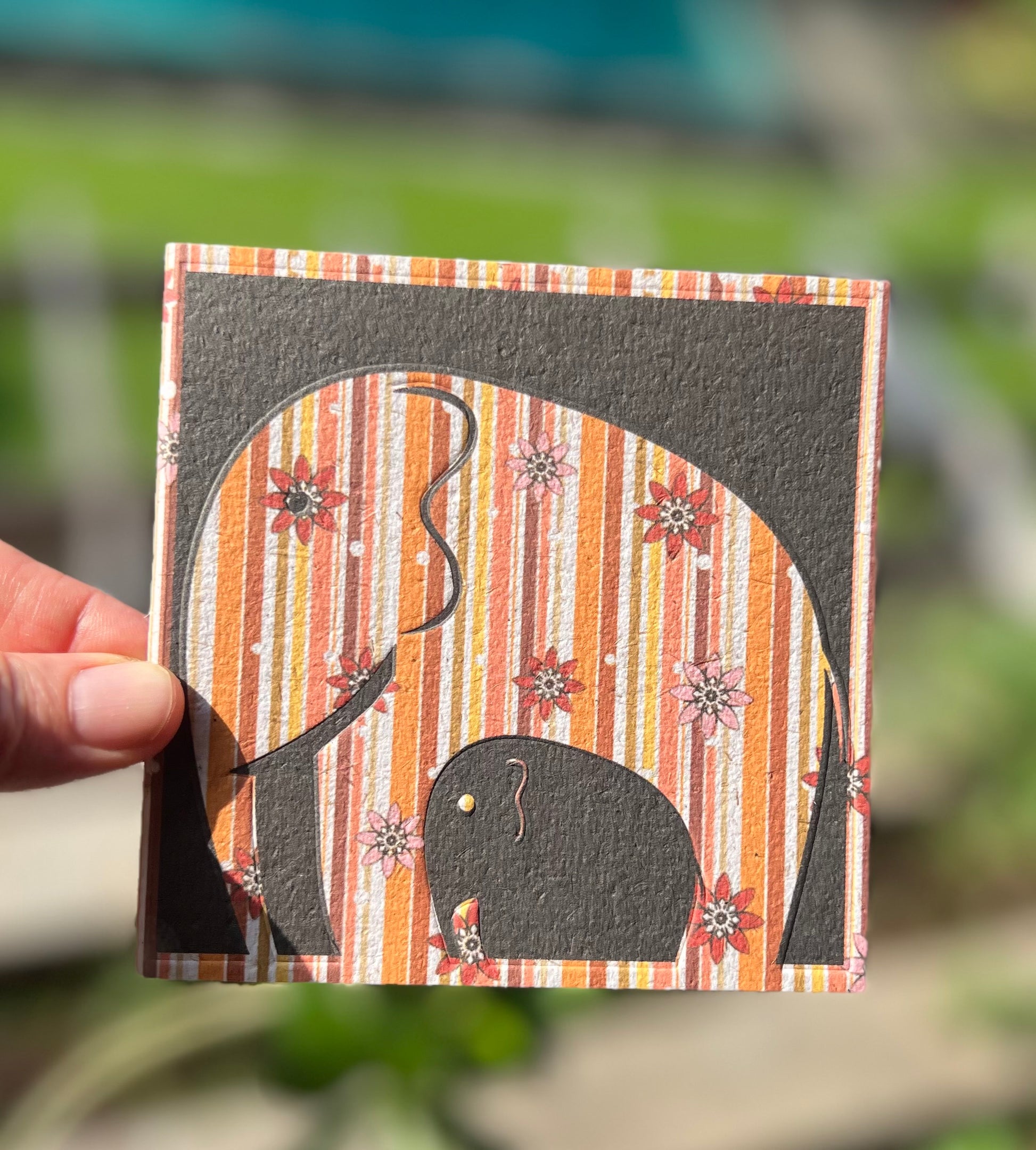 Spot the mum and bub elephant with our adorable elephant cards! These unique cards are ideal for welcoming new babies, and they're even more special because they're made from recycled paper and elephant dung collected from the Bali Zoo.