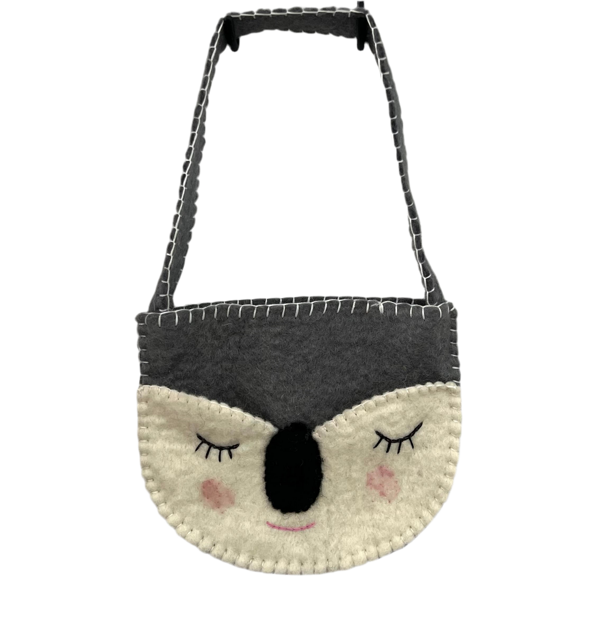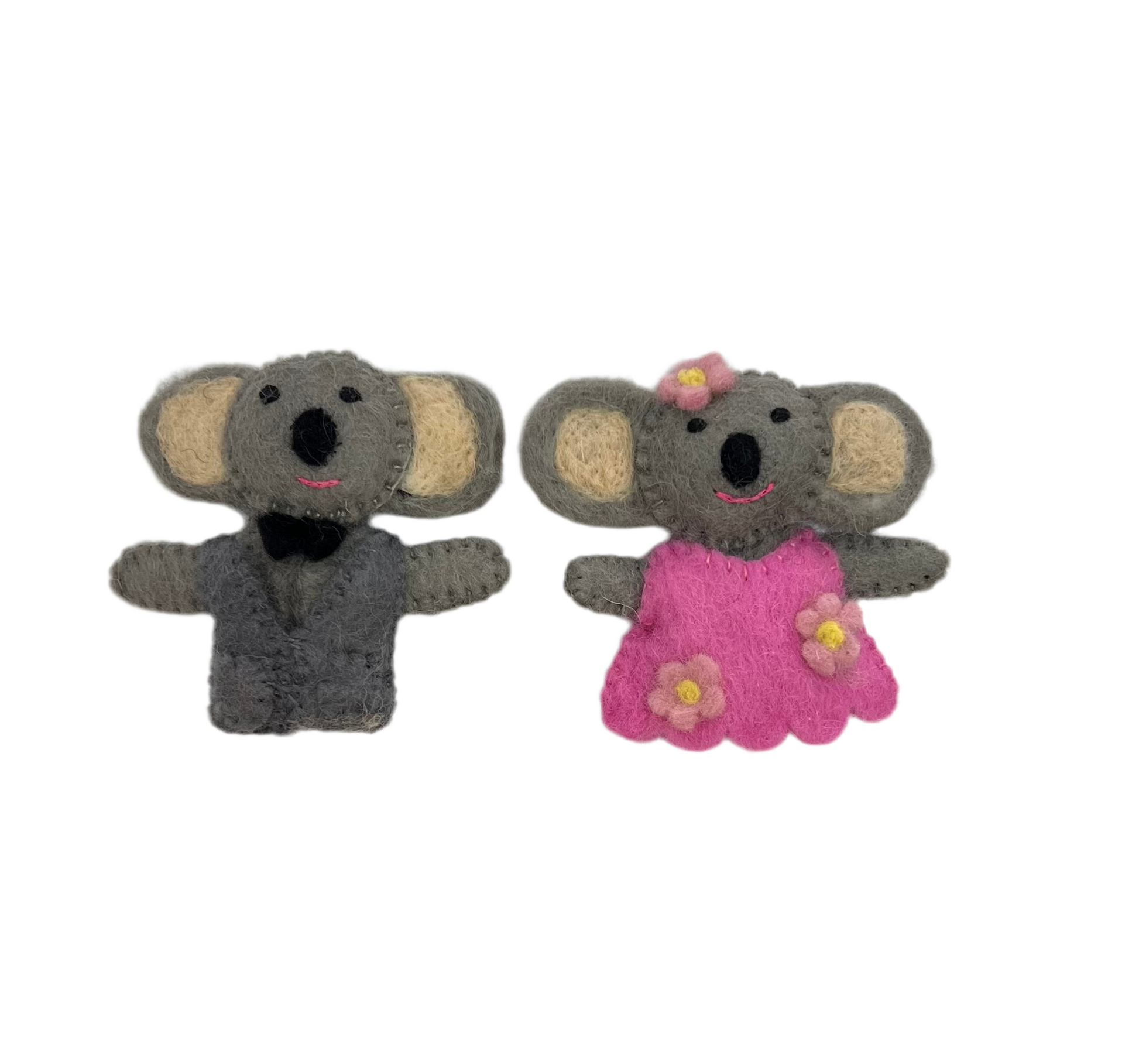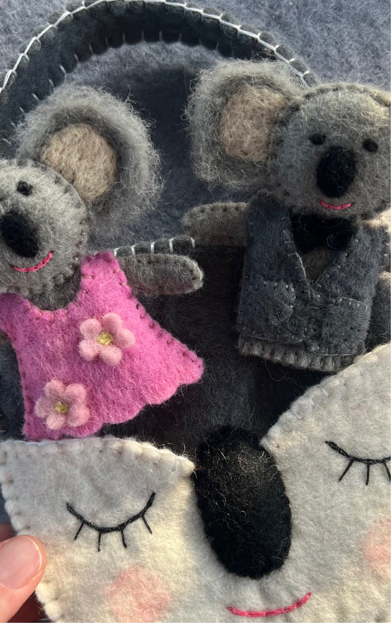 Introducing our new koala puppet bag, designed in collaboration with our talented felt producers in Nepal. Your little one will be smitten with this adorable little bag and very cute koala boy and girl set! Each puppet and bag is hand-felted with love, and finished with cute blanket stitching. The bag features two front pockets to keep the puppets safe or tuck them inside the bag for a nap. We made sure the bag is easy for little hands to access by leaving the opening free of zippers or buttons. And we know just how much kids love to stuff their bags with treasures, so this bag is perfect for