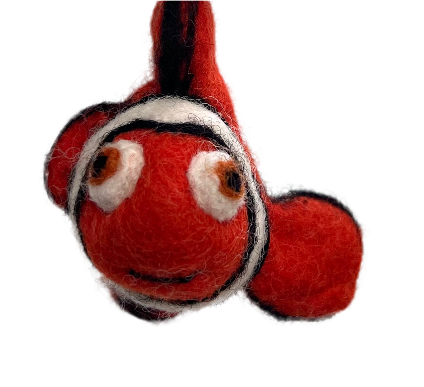 Everyone’s fav character NEMO is now available in this cute little hanging decoration . Attach him to your bag or use as a key chain , hang him in your car or on the Xmas tree , our fun felt clown fish is ready to be taken on adventures with you !