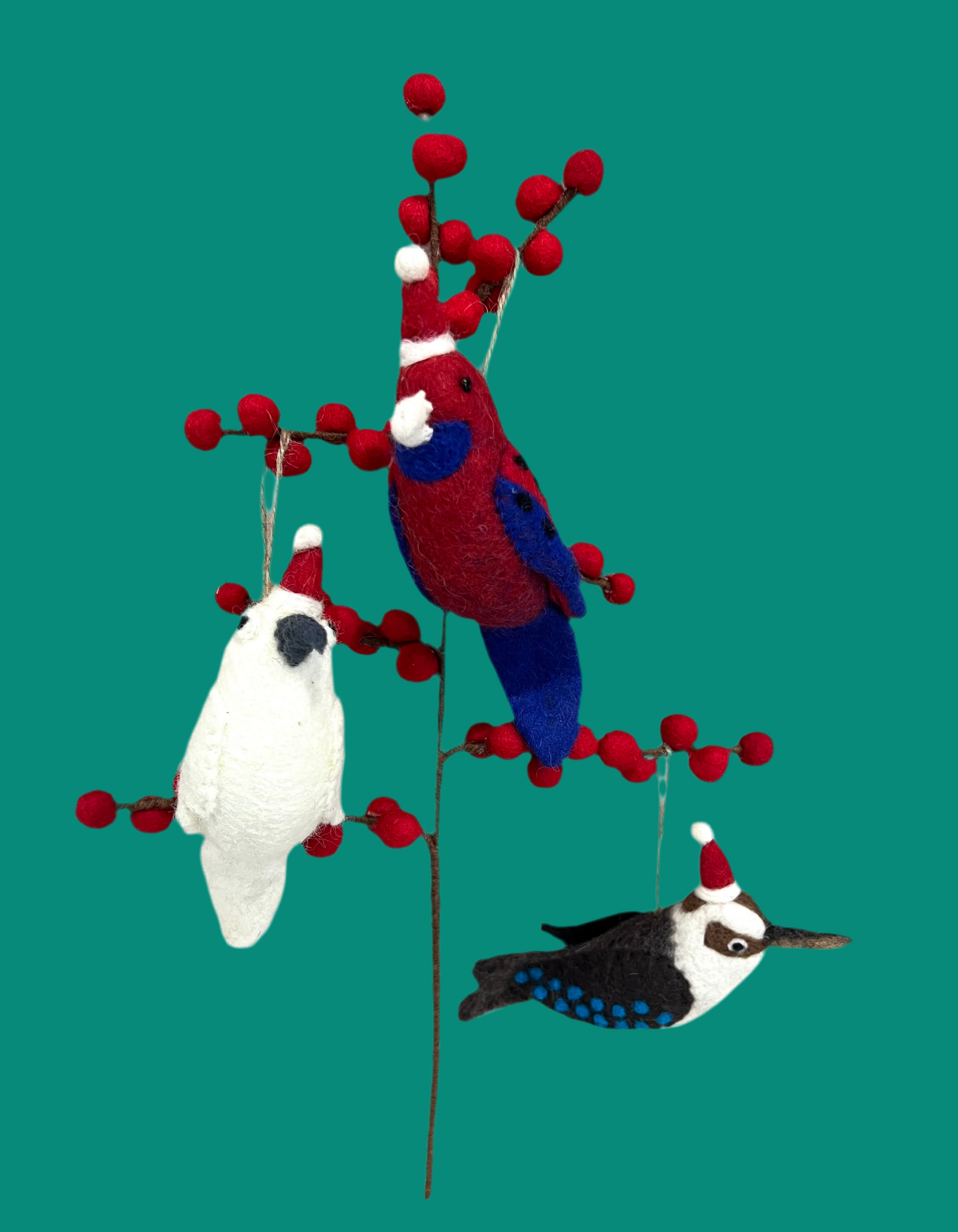 Measuring about 40cm tall, featuring 6 flexible arms, these branches are fantastic for adding some flair to your home. Use them in a vase or as a small Christmas tree alternative for those tight on space. They look fab as is, but feel free to jazz them up with a couple of our adorable felt Christmas ornaments for an extra touch of whimsy. They also pair wonderfully with our Aussie birds collection!