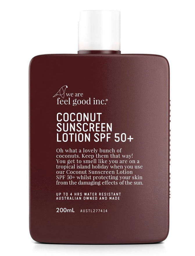 You get to smell like you are on a tropical island holiday with “we are fell good inc” Coconut Sun Lotion SPF 50+. Like all our sunscreens, we have eliminated the nasties so you can cover up with confidence. Oxybenzone, PABA and Paraben free. Staying safe in the sun never smelt so good!