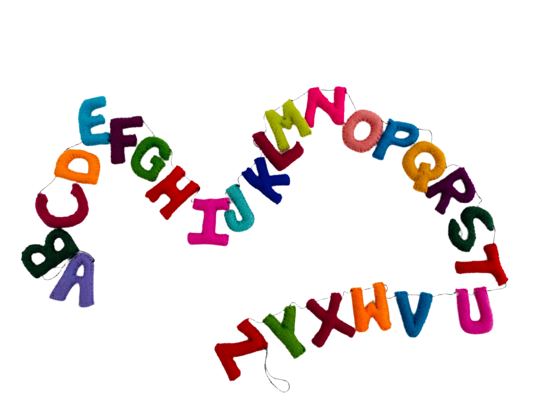 Develop your child's love of learning with this bright and colourful felt ABC mobile. The letters are strung on a thick black twine and there is a loop at each end to attach to hooks or pin to the wall.