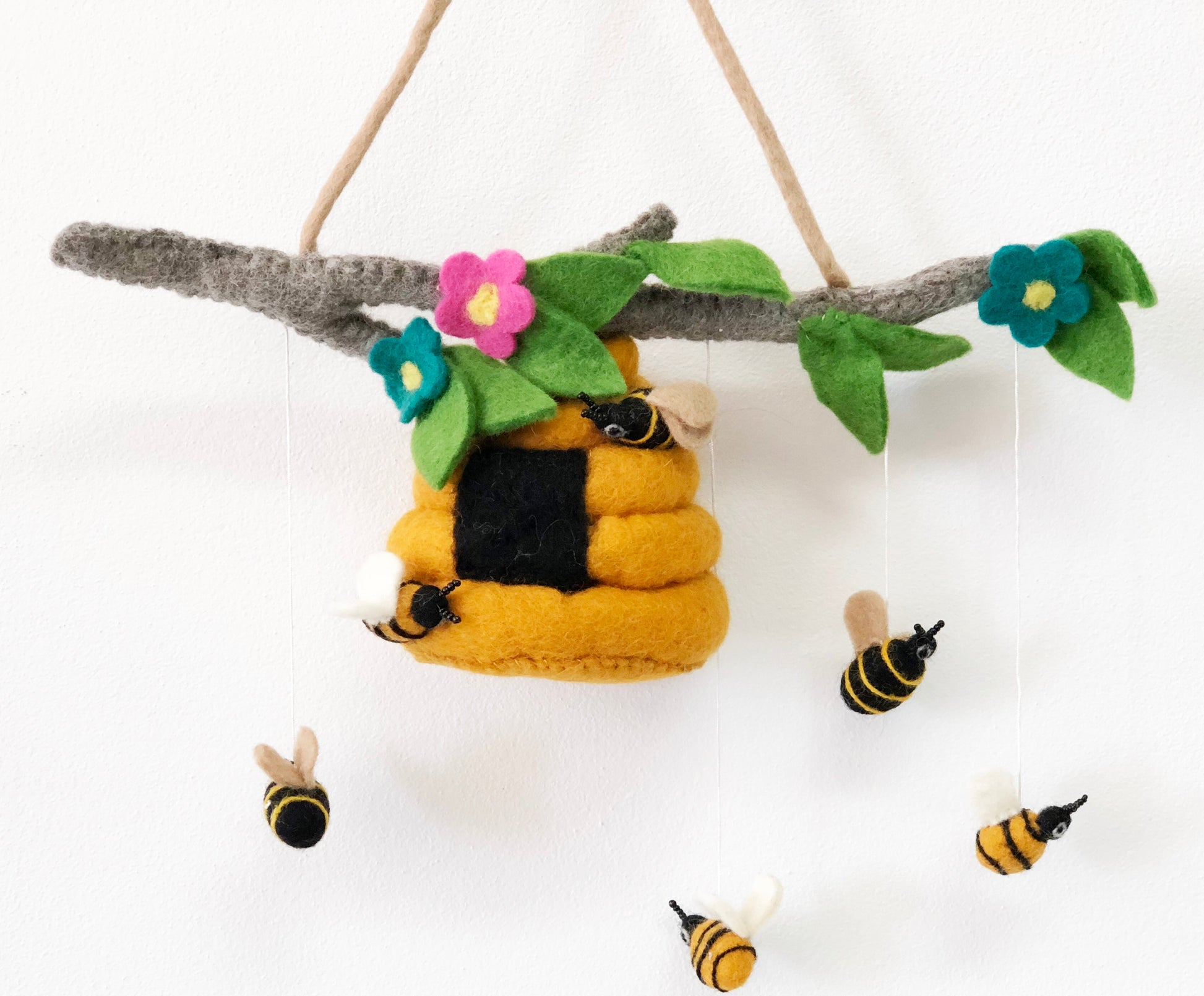 Our cute buzzy bee mobile is perfect to hang in a child's room above a change table or on a wall.