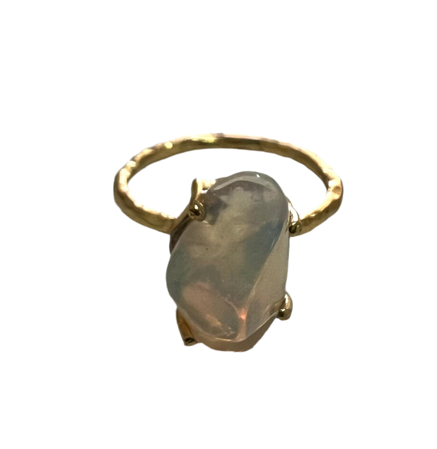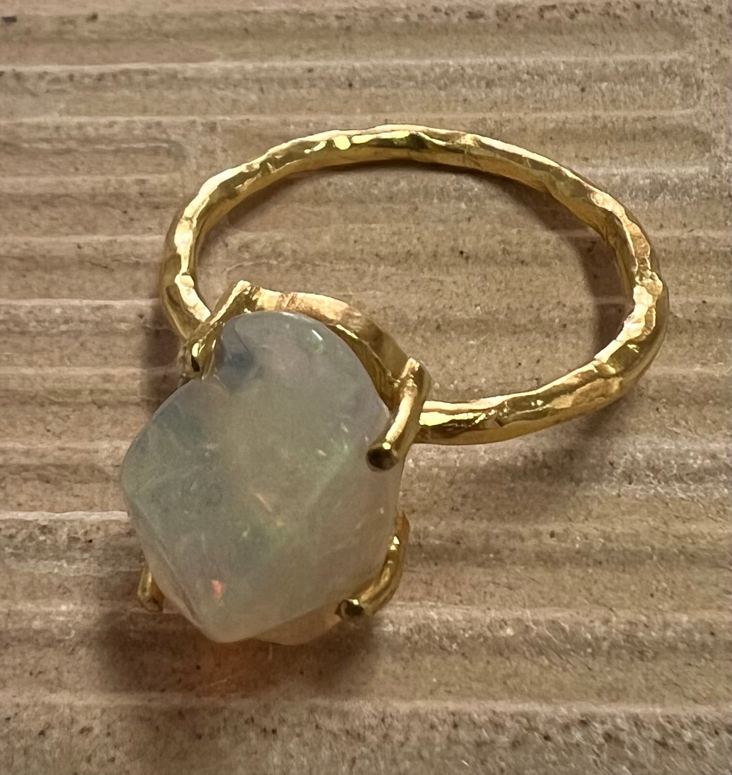 Our opal claw set ring draws inspiration from the timeless designs of the 1970's with its high set stunning rough cut Ethiopian Opal. Due to the natural rough cut, each ring has a unique variation and no two rings are identical.