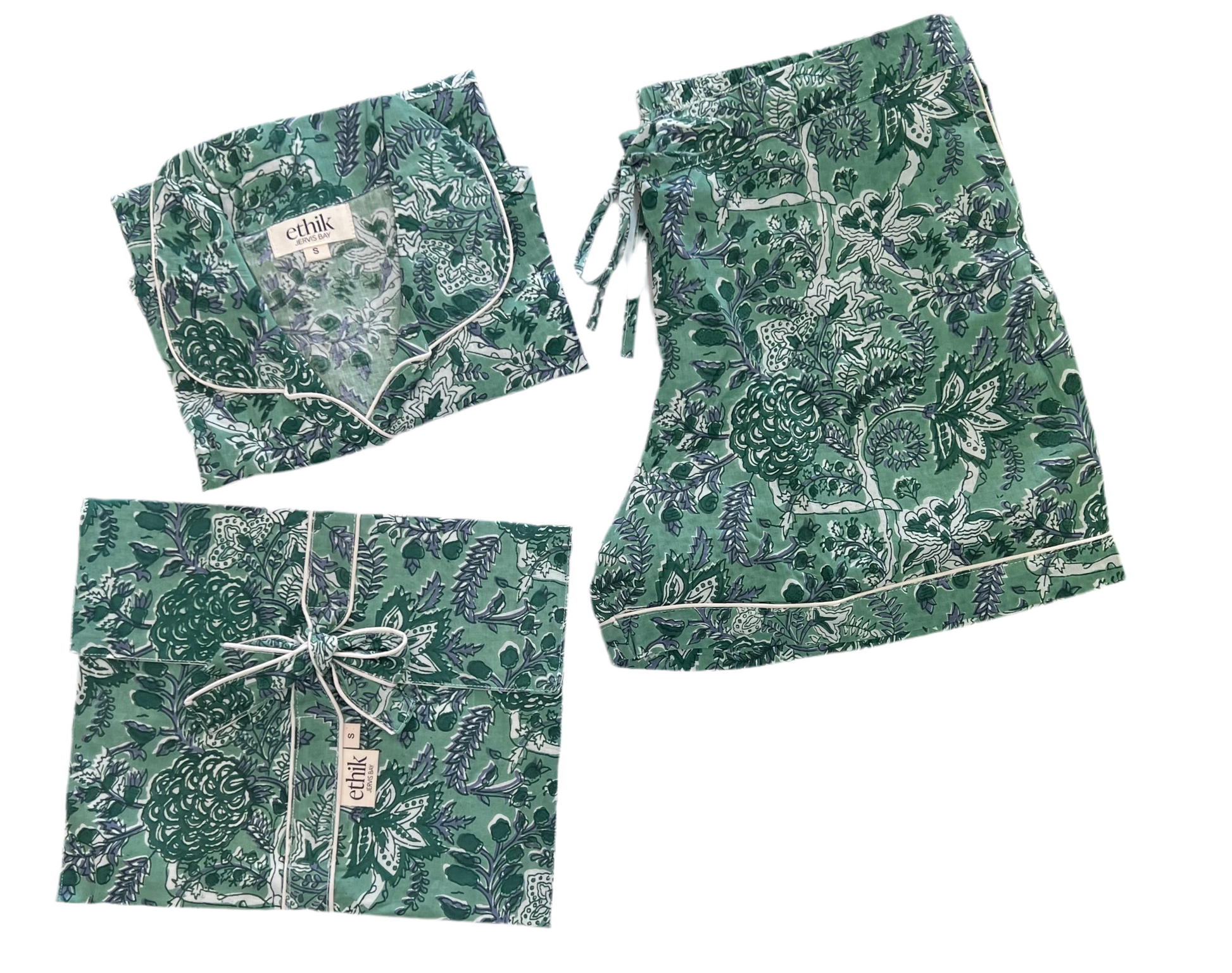 Our short sleeve PJ sets have just arrived and make 🤶 the perfect gift for that special person in your life , each set comes beautifully packaged in its own bag . Each pair of PJ’s are hand block printed in Jaipur 🙏