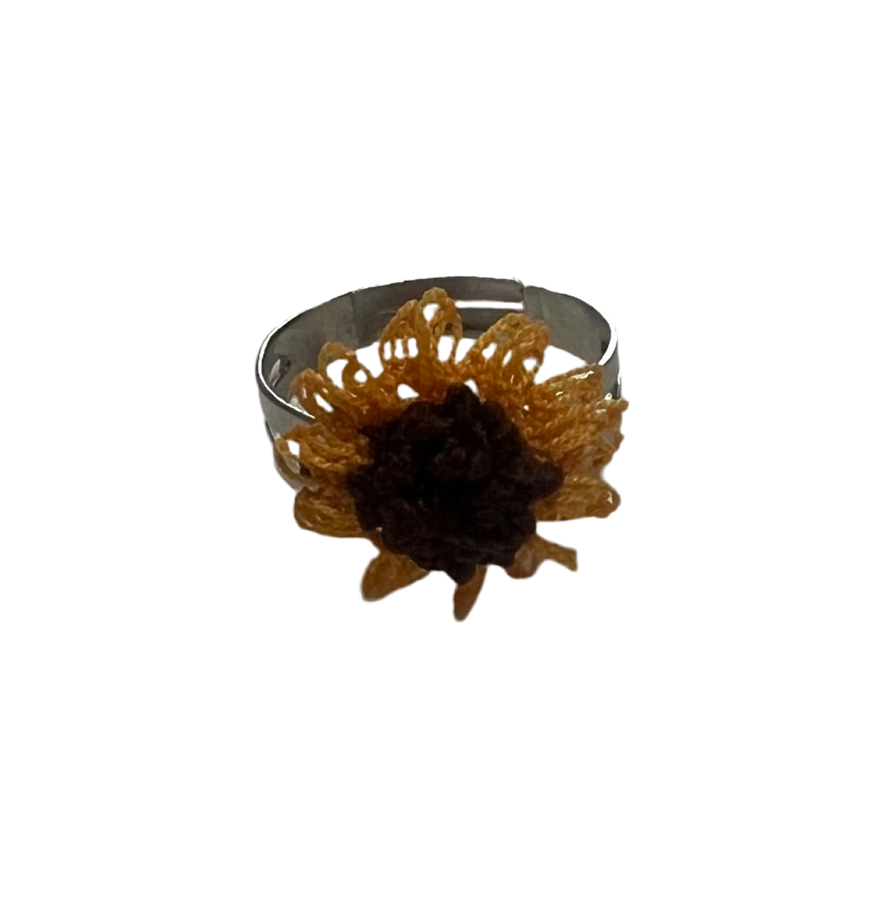 These exquisite sunflower and daisy rings are hand-made using a traditional Turkish needle lace technique known as "oya". A technique that is passed on from generation to generation, Oya is a symbol of delicacy, patience and beauty. They are made by hundreds of stitches and knots using a very thin needle and thread. They are light weight and delicate and perfect for any age and any occasion.