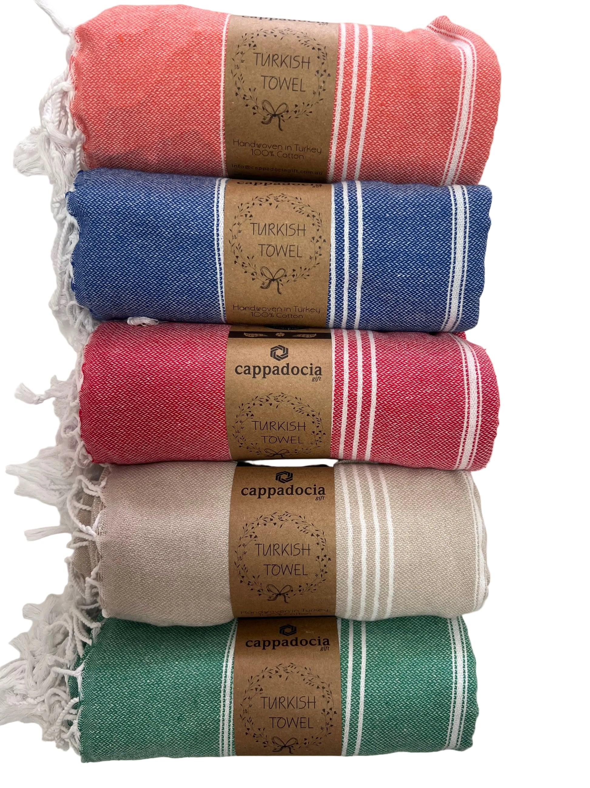 A staple of the Ottoman hamam or bathhouse culture dating back hundreds of years, Turkish towels or "pestemals" were originally designed to help bathers maintain their privacy. Today they are perfect for the beach or pool as they are light weight, highly absorbent and therefore dry much faster than traditional beach towels. They are perfect for travelling, roll them up and use them as sarong, wrap or towel!