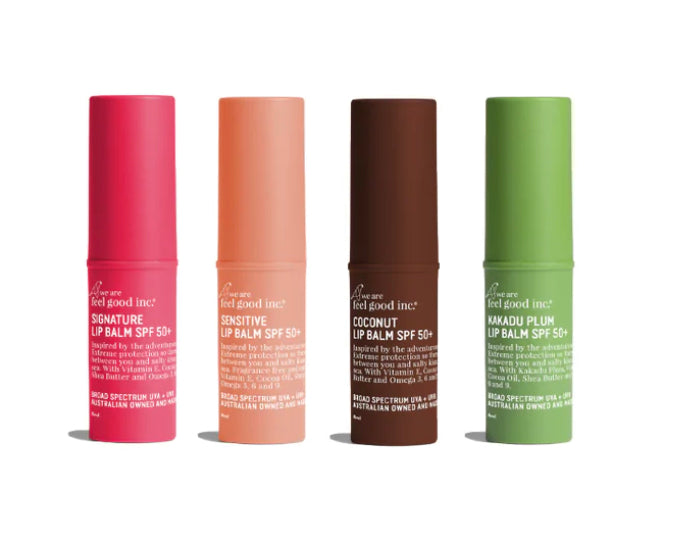 New to #teamfeelgood? Not sure which Lip Balm you prefer? Try them all with our ‘Lip Balm Sampler’ bundle and never be without your trusty Lip Balm. All four Lip Balms are Broad Spectrum SPF 50+ and free from parabens, PABAs, oxybenzone and octinoxate. Extreme protection so there's nothing between you and salty kisses by the sea.